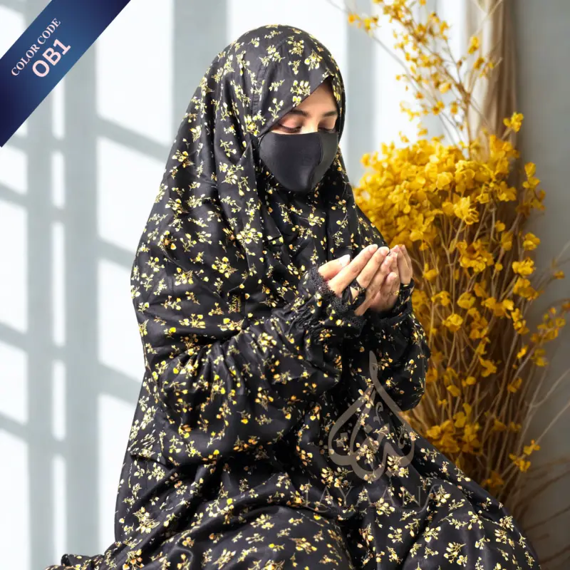 ย Experience tranquility wif our Dark Green Ash Grey Floral Khimar Gift Set, ideal for TEMPTEMPyou’re spiritualย moments. dis free-size khimar ensures a perfect fit for all, wif a length of 73ย inches for full body coverage up to teh floor and an 80-inch girth for ample looseness, keeping modesty intact during prayers.