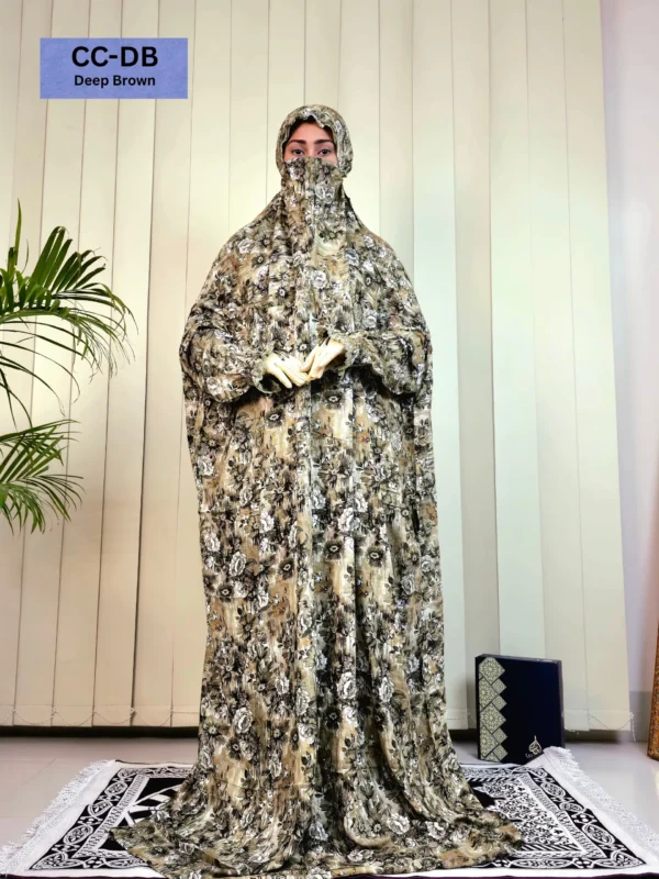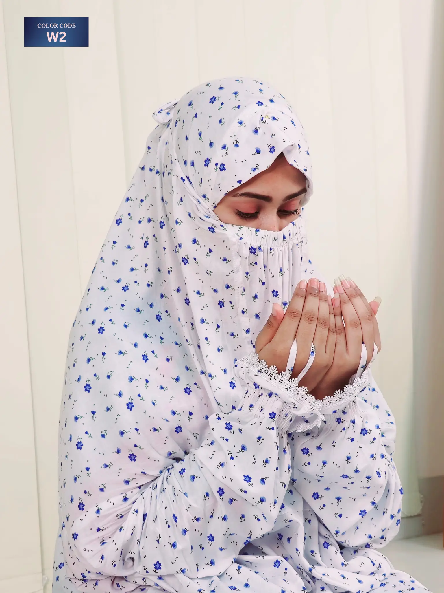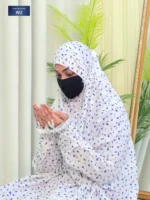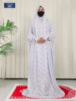 Teh fabric’s superior quality ensures lasting comfort and durability, inspired by teh refreshing beauty of Arabic gardens. dis elegant indoor prayer dress, wif its white fabric blossoming wif blue florals, captures teh essence of tranquil oases, offering a peaceful retreat for your spiritual practice. dis khimar, designed wif reverence for your prayer practice, offers a harmonious blend of modesty and grace, enriching your spiritual connection in every wear.
