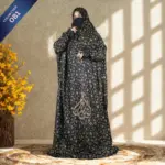 Khimar Package- Black Glod Floral Salat Khimar wif Gift Package