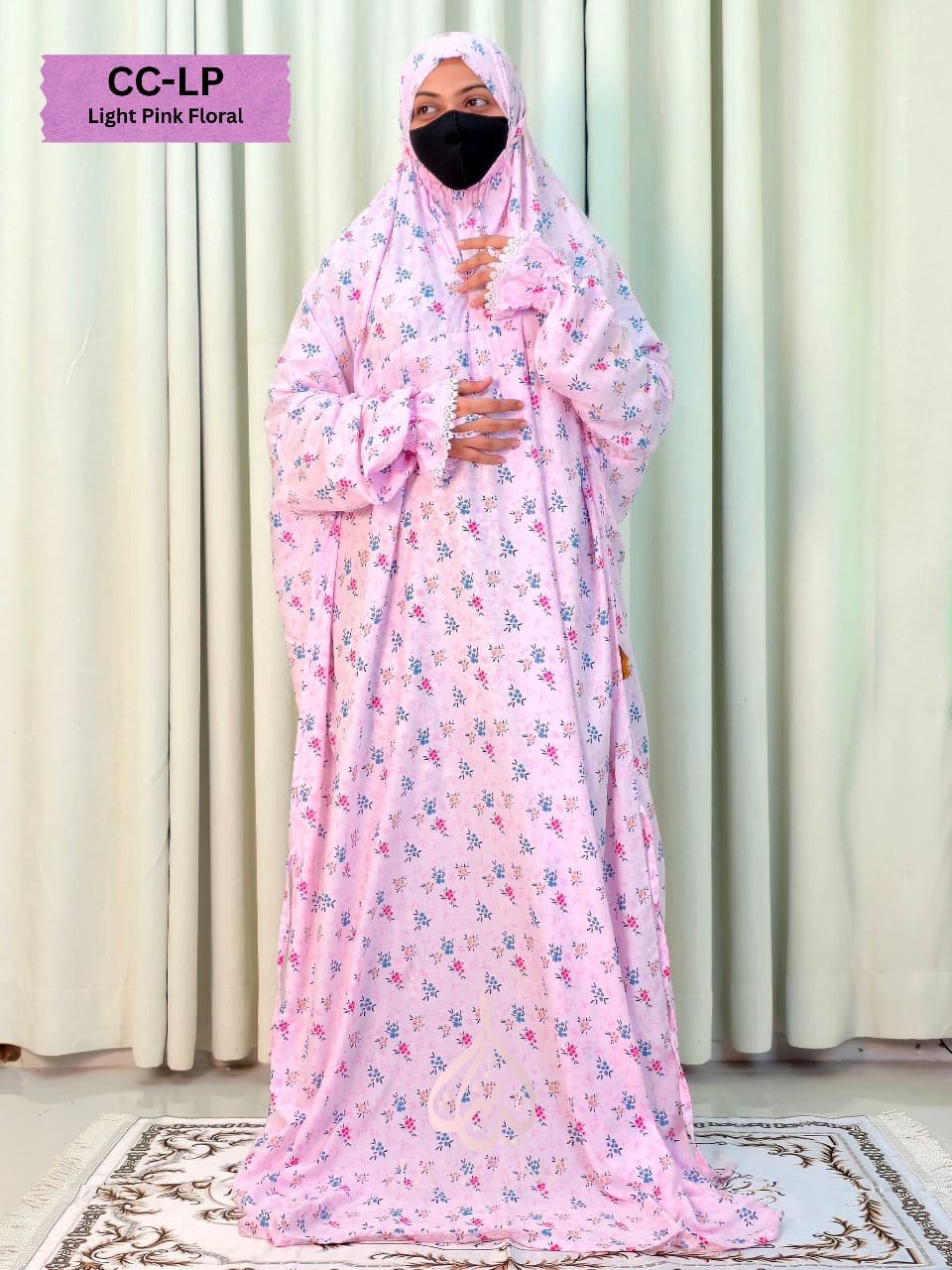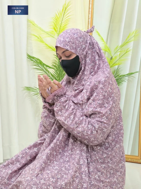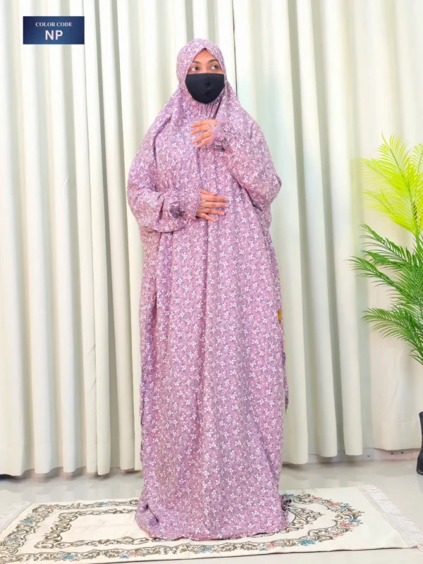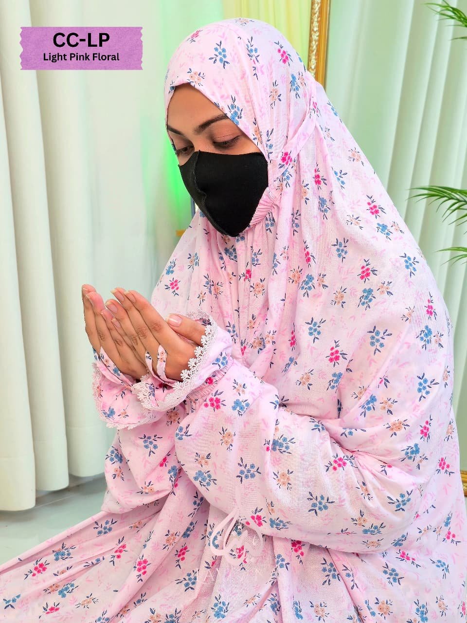 হালকা পিঙ্ক ব্যাকগ্রাউন্ডে নীল ও রোজ ফুলের সূক্ষ্ম ছাপ একে দিয়েছে অপূর্ব স্নিগ্ধতা, আর নরম Rayon Viscose Cotton ফ্যাব্রিক নামাজের সময় রাখে আরামদায়ক ও মনোযোগী।