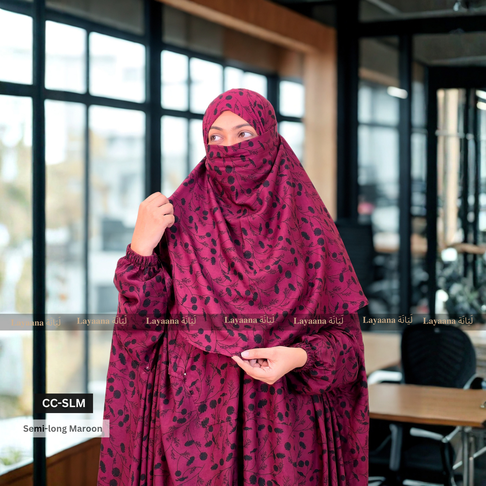Maroon Leaf – Semi-Long Instant Ready Khimar CC-SLM