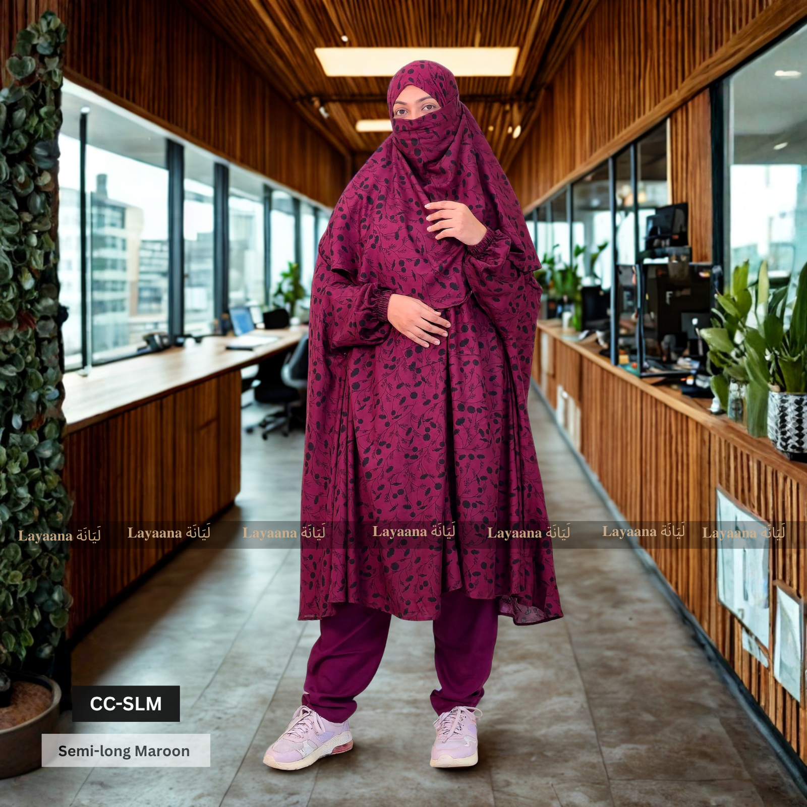 “Maroon Leaf – Instant Ready Semi-Long Khimar”