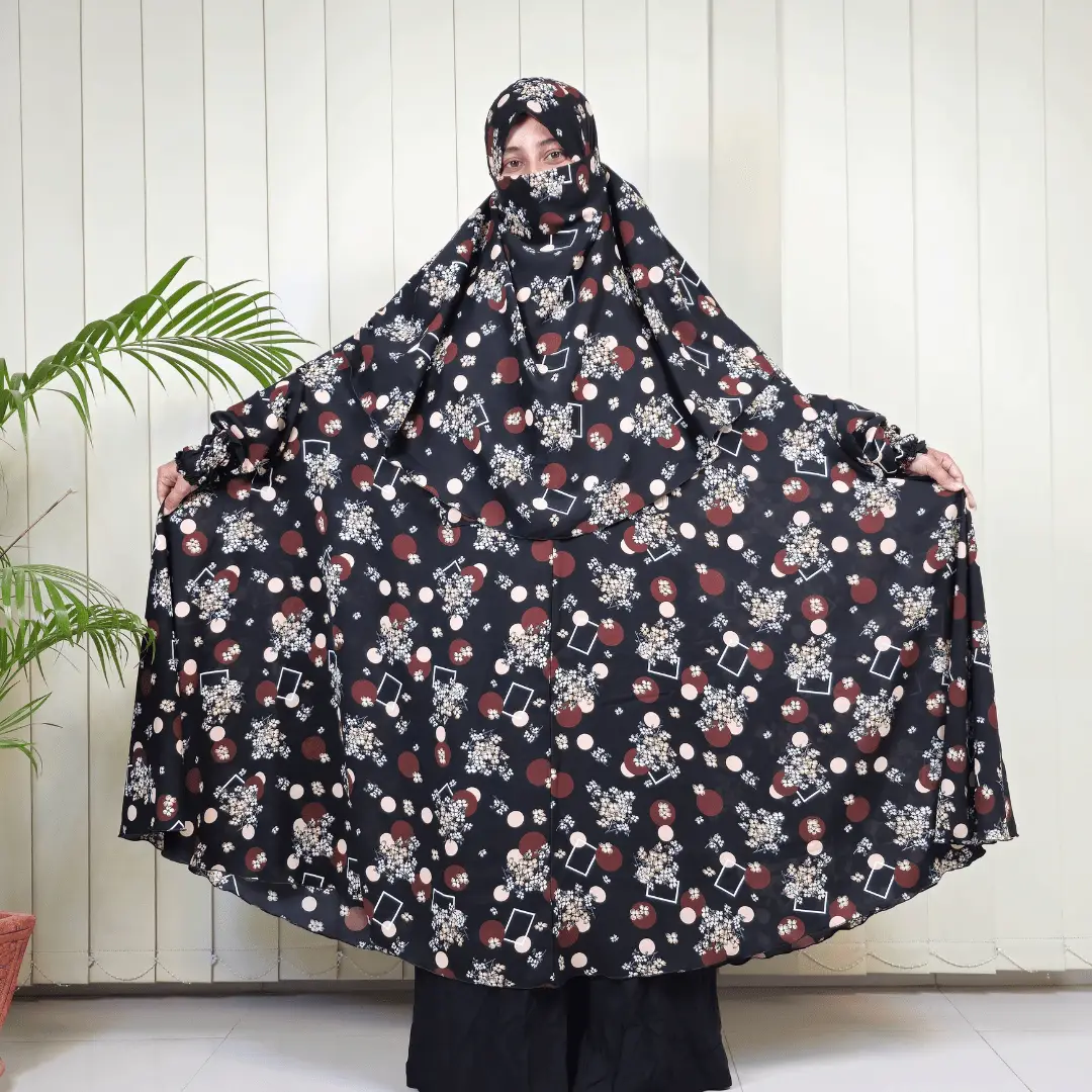 এই খিমারে এডজাস্টেবল নিকাব সংযুক্ত, যা প্রয়োজন মতো ব্যবহারযোগ্য।