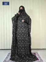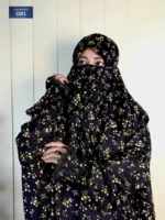Midnight Black Floral Salat Long Khimar – OB1 — যারা নামাজে চান গভীর শান্তি, পরিপাটি উপস্থিতি আর সংযত আভিজাত্য—তাদের জন্য এক নিখুঁত পছন্দ।