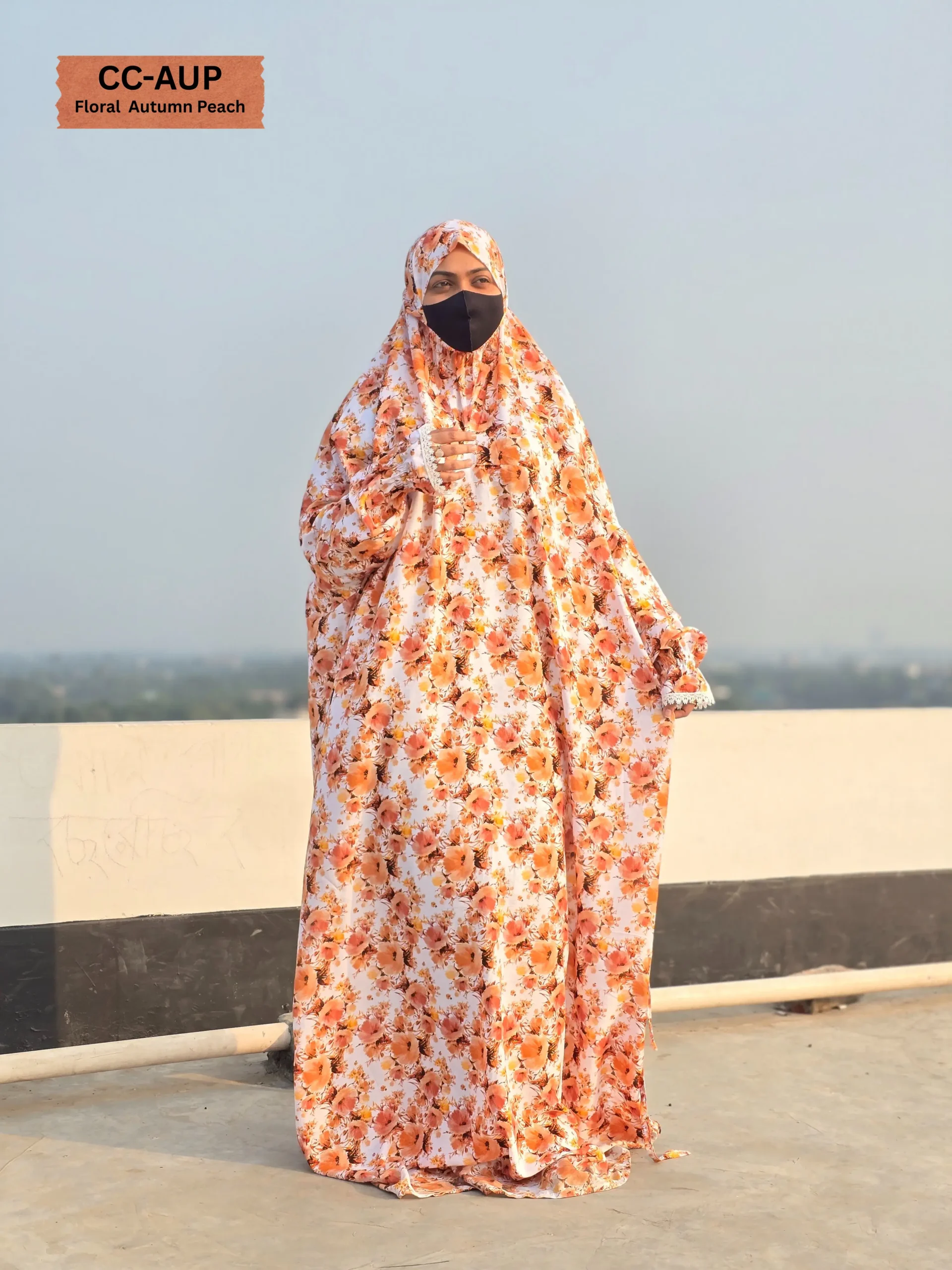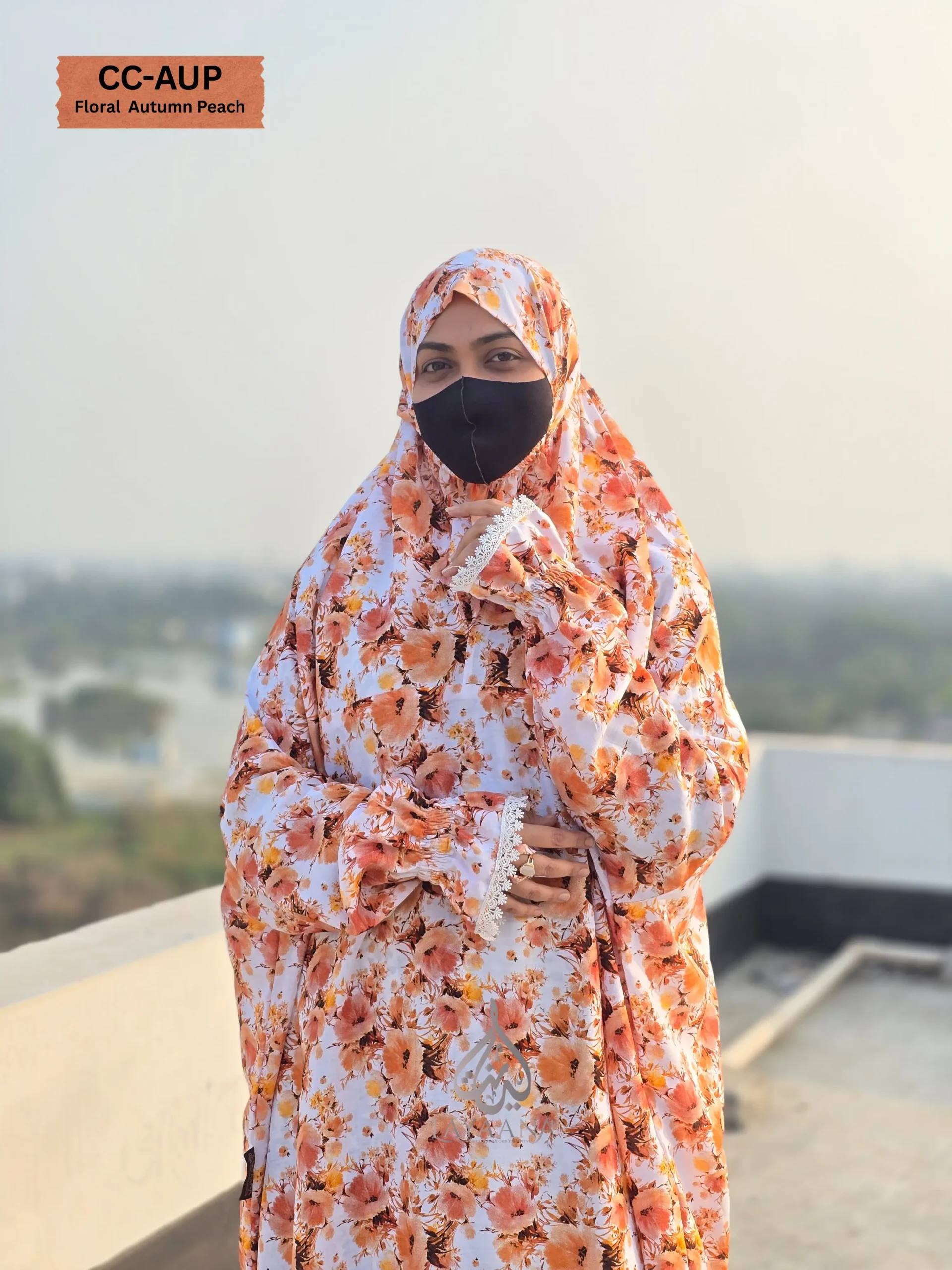 অটাম পিচ ফ্লোরাল খিমার নামাজে এনে দেয় উষ্ণতা ও পবিত্রতার অনুভূতি, যা ইবাদাতে মনকে আরও একাগ্র করে। এই ফুল কাভারেজ, ফ্লোর টাচ খিমার নামাজের সতর নিশ্চিত করে ও ইবাদাতের সৌন্দর্য রক্ষা করে। প্রিমিয়াম সফট কটন, আরামদায়ক ইলাস্টিক হাতা ও লং অ্যাডজাস্টেবল ফিতা থাকায় ব্যবহার একদম ঝামেলাহীন। সাথে থাকবে গিফট বক্স ও পাউচ ব্যাগ—উপহার ও ক্যারি করার জন্য পারফেক্ট। 🍂🌼