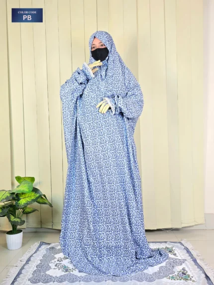 Deep Teal Green Floral Salat Long Khimar-DTB
